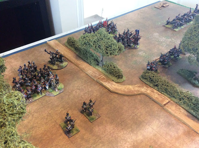 The French failed to close, gave off a desultory volley then scarpered back towards their nearest supports in rout. This could have been bad for the rest of the French brigade as a 'Faltering' brigade as it now was must pass it's subsequent brigade morale roll (anything other than a 1 or 2). Fortune favoured the French in this instance.